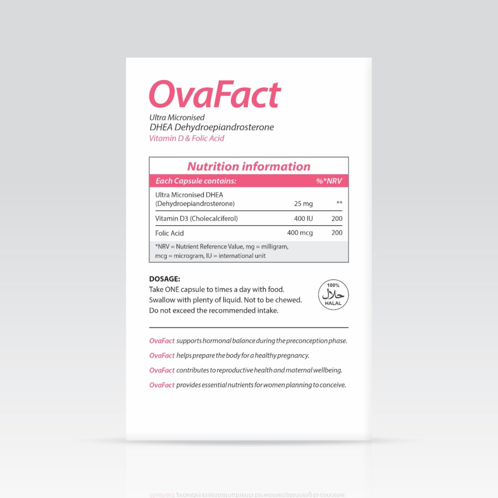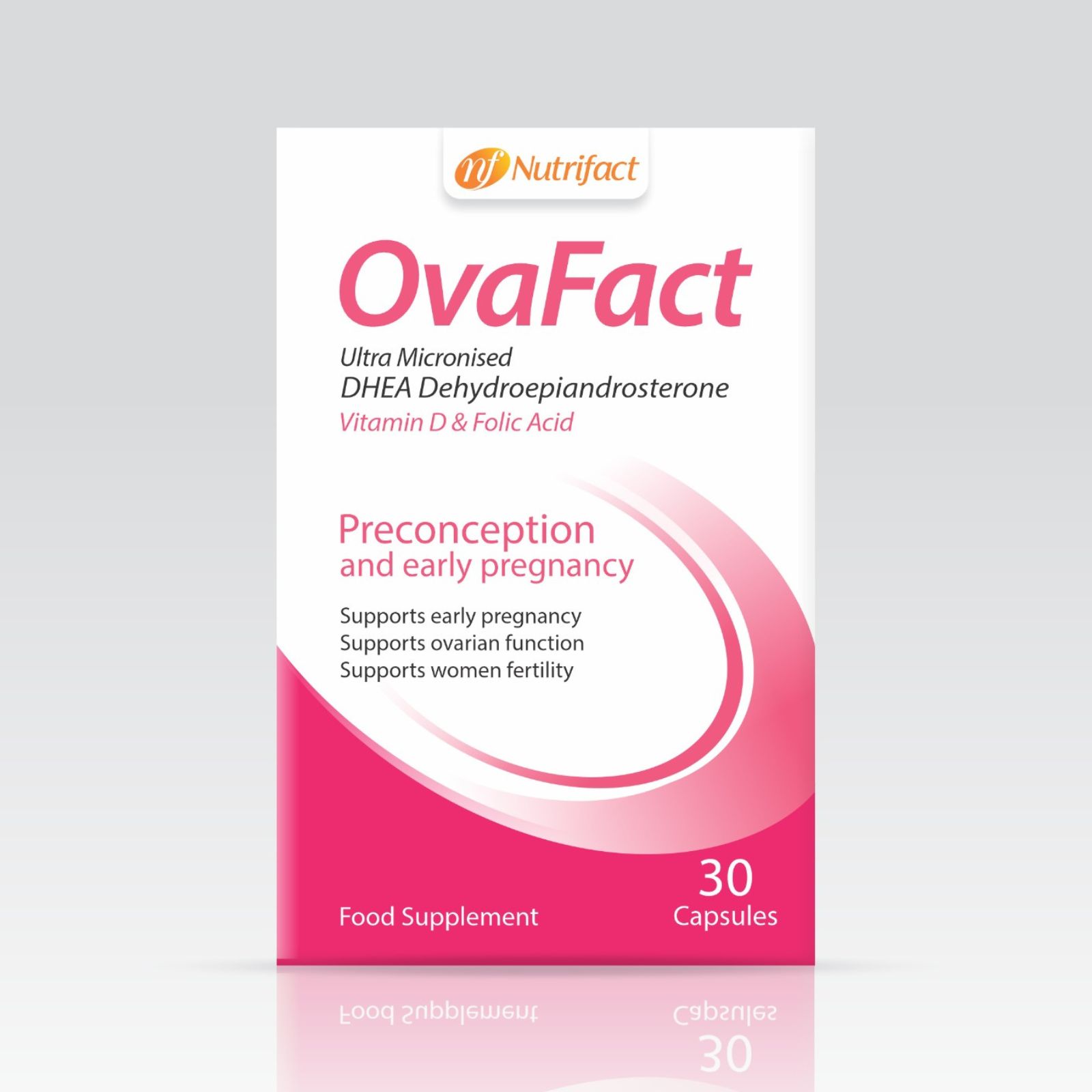 OvaFact is a carefully designed food supplement for women preparing for conception or in the early stages of pregnancy. It contains a targeted combination of Ultra Micronised DHEA (Dehydroepiandrosterone), Vitamin D3, and Folic Acid, all of which play a vital role in reproductive health, hormonal balance, and the body’s readiness for pregnancy.